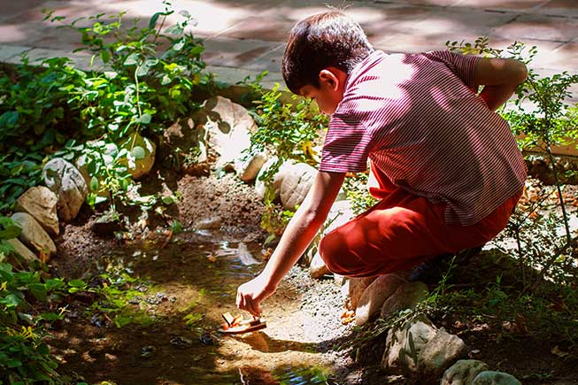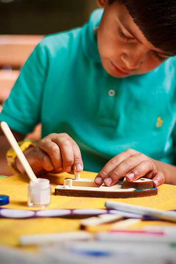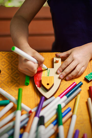در با هم قایق بسازیم قطعات لازم برای ساخت یک قایق در اختیار کودک گذاشته شده است. چسب چوب و سنباده ای که در بسته است به کودک امکان تجربه یک پروژه ساخت چوبی/نجاری را میدهد. راهنمای تصویری که در بسته است به کودک کمک میکند که مراحل ساخت را پیگیری کند، اما در عین حال در تمامی مراحل او آزادی عمل دارد و میتواند به دلخواه خود فرآیند ساخت این اسباب بازی را پیش بینی و انجام دهد. در انتها او یک قایق دارد که با کشی که نیروی لازم برای حرکت را فراهم میکند در آب جلو میرود. قایقی که بارها و بارها میتوان در یک تابستان گرم با آن بازی کرد و لذت برد.